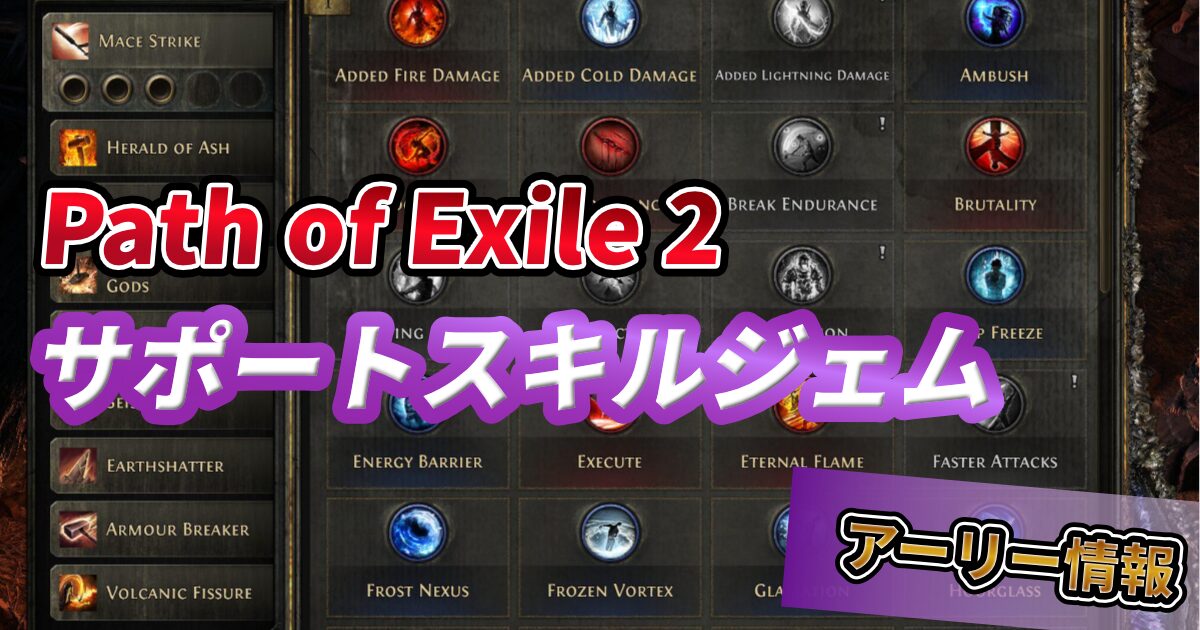 このページでは、PoE2に登場するサポートスキルジェムを全て紹介しています。
